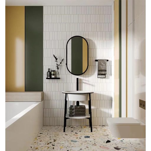 Teremtsen modern, légies atmoszférát fürdőszobájában a COPEN állványos mosdóval, amely a selymes matt fehér kerámia és a stabil, fekete fémváz elegáns kontrasztjára épít. A minimalista, nyitott kialakítás nemcsak vizuálisan tágítja a teret, de az integrált alsó polcnak köszönhetően praktikus tárolóhelyet is kínál a törölközők és kiegészítők számára. A teljes szerkezet speciális, nedvességálló felületkezeléssel készül, így a párás környezet ellenére is évtizedekig megőrzi stabil tartását és prémium esztétikáját.