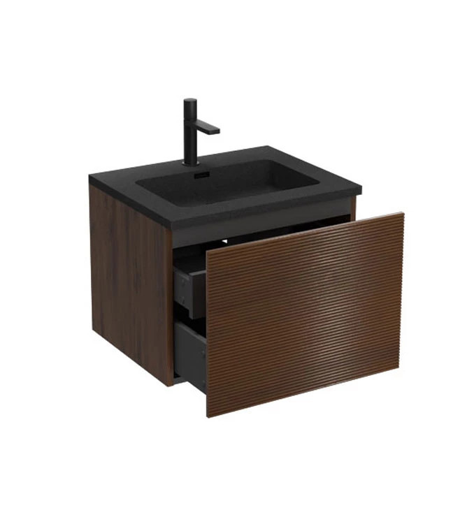 A COPEN Lumber fürdőszobaszekrény a modern bordázott frontok és a természetes tölgy textúra találkozásával emeli a helyiség színvonalát. A bútor speciális, magas minőségű nedvességálló alapanyagokból készült, így hosszú évekig ellenáll a párás környezetnek anélkül, hogy az anyag szerkezete vagy a felület esztétikája károsodna. A függesztett kivitel tágítja a teret, a letisztult vonalvezetés pedig minden modern enteriőrbe tökéletesen illeszkedik. Kérjük, vegye figyelembe, hogy a termék a mosdókagylót nem tartalmazza, így lehetősége van az egyedi igényeinek megfelelő pultra helyezhető mosdó kiválasztására.