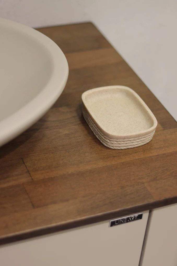 MINOTTI Szappantartó, négyögletű, kőhatású, bézs