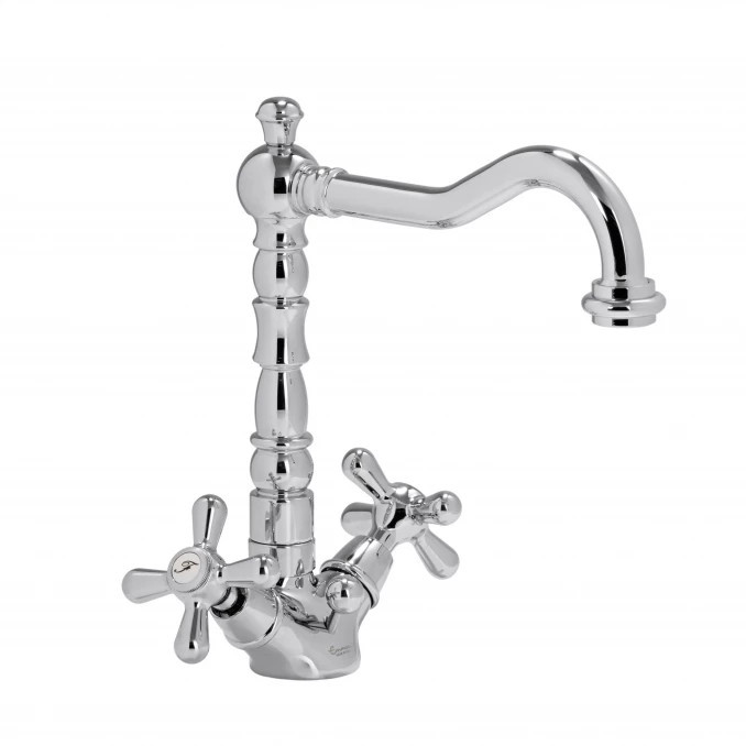 - Retro és Rusztikus stílus: Az íves kifolyócső és a keresztfogantyús kialakítás az „Old Fashion” korszak luxusát idézi.