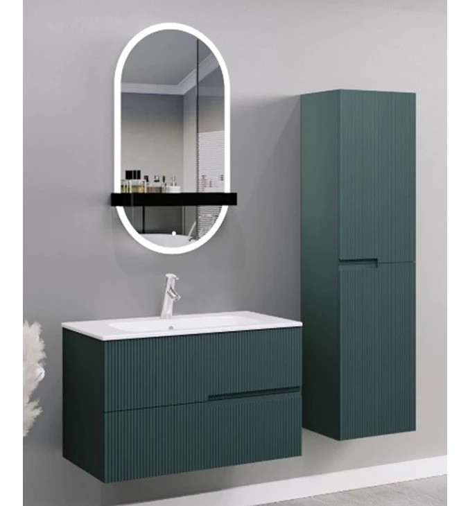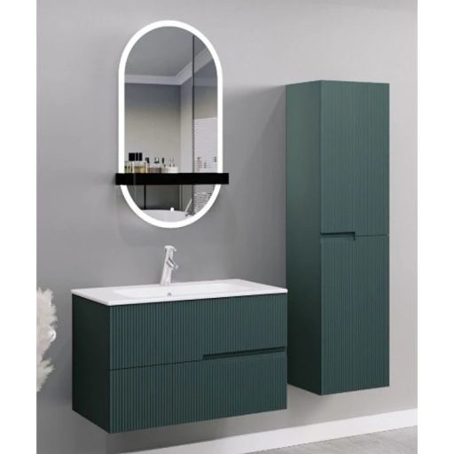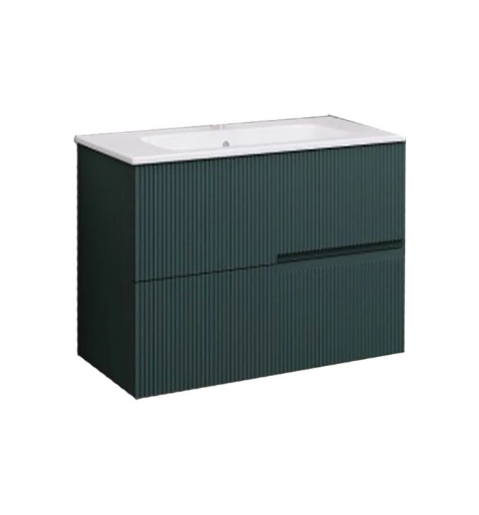 Vigyen egyedi, megnyugtató luxust fürdőszobájába a LineART DROP függesztett szekrénnyel, amely a különleges matt jáde zöld árnyalatával és a modern, bordázott (3D) frontfelületével a legfrissebb belsőépítészeti trendeket képviseli. A bútor válogatott, prémium minőségű nedvességálló alapanyagokból készül, így a párás környezet ellenére is évtizedekig megőrzi selymes tapintású felületét és szerkezeti stabilitását. A tágas, csillapított záródású fiókok bőséges tárolóhelyet biztosítanak, miközben a függesztett kivitel légies megjelenést kölcsönöz a térnek. Fontos: A termék a képen látható mosdókagylót és csaptelepet nem tartalmazza, így lehetősége van egy egyedi, pultra helyezhető vagy beépíthető megoldással teljesen személyre szabni a szettet.