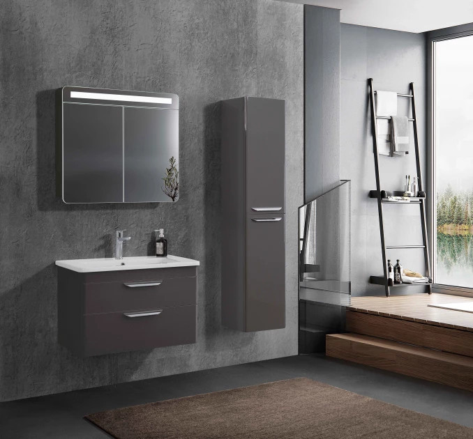 Maximalizálja fürdőszobája tárolókapacitását a LineART EFES függesztett magas szekrénnyel, amely a mély tónusú antracit felületével és modern vonalvezetésével az indusztriális eleganciát képviseli. A bútor válogatott, prémium minőségű nedvességálló alapanyagokból és speciális élzárással készül, így a párás környezet ellenére is évtizedekig megőrzi vetemedésmentes szerkezetét és makulátlan esztétikáját. A kétajtós, belső polcokkal tagolt kialakítás bőséges és rendezett helyet biztosít a textíliák és kozmetikumok számára, miközben a függesztett design tágítja a teret és megkönnyíti a padló tisztán tartását.