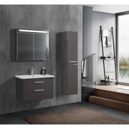 Emelje fürdőszobája színvonalát a LineART EFES függesztett szekrénnyel, amely a mély tónusú antracit felület és az ergonomikus króm fogantyúk elegáns kontrasztjával hódít. A bútor válogatott, prémium minőségű nedvességálló alapanyagokból és speciális élzárással készül, így a párás környezet ellenére is évtizedekig megőrzi vetemedésmentes szerkezetét és makulátlan esztétikáját. A két tágas, csillapított záródású fiók bőséges tárolóhelyet biztosít a textíliák és kozmetikumok számára, miközben a függesztett kivitel tágítja a teret. Fontos: A termék a képen látható mosdókagylót és csaptelepet nem tartalmazza, így Ön teljesen egyedi igényei szerint választhat hozzá egy stílusos pultra helyezhető vagy beépíthető megoldást.