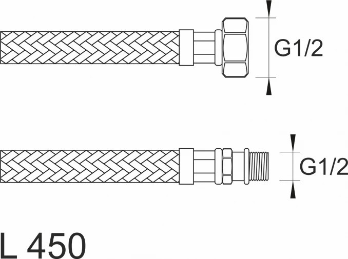 MINOTTI SBA Inox flexibilis bekötőcső 1/2" belső menet - 1/2" külső menet 450 mm hossz