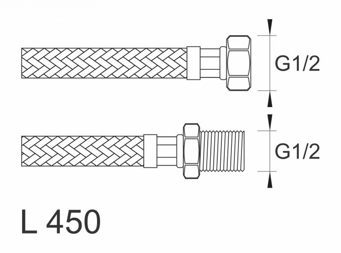 MINOTTI SBA Inox flexibilis bekötőcső 1/2" belső menet - 1/2" külső menet 450 mm hossz
