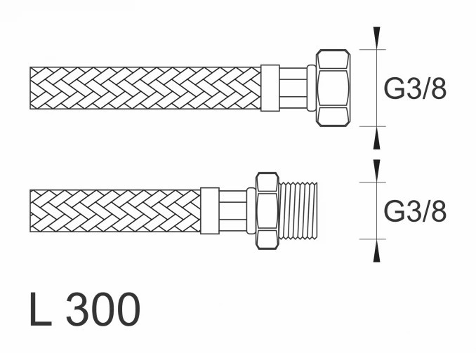 MINOTTI SBA Inox flexibilis bekötőcső 3/8" külső menet - 3/8" belső menet 300 mm hossz