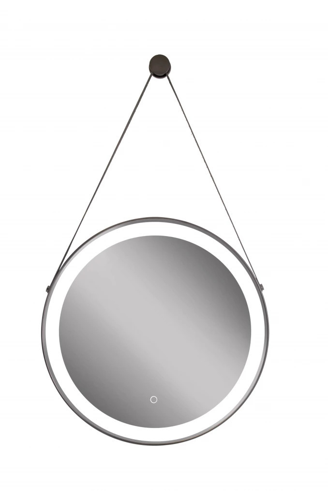 MINOTTI Modern kerek LED-es tükör bőr függesztő szíjjal – 60 cm