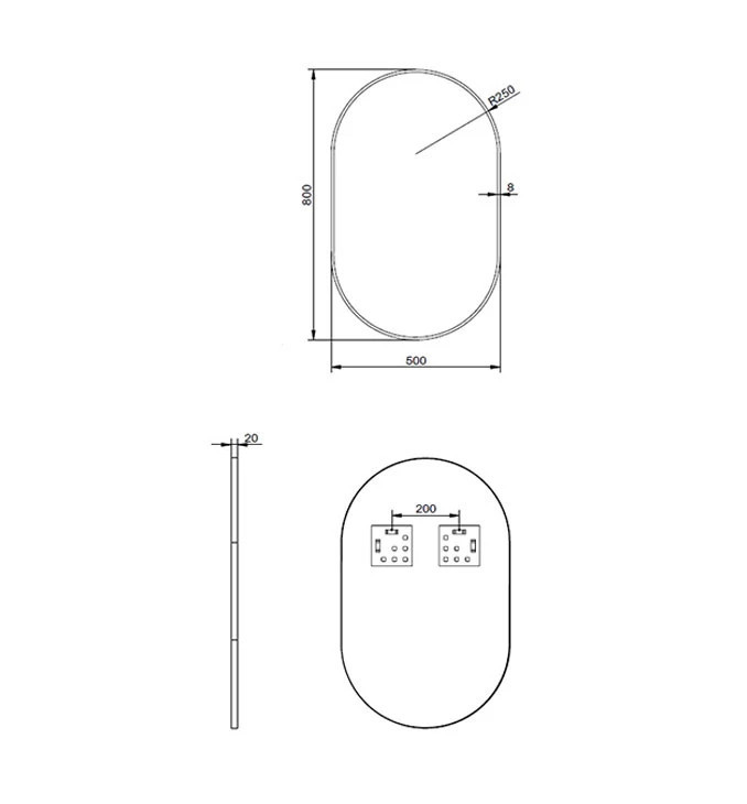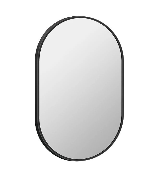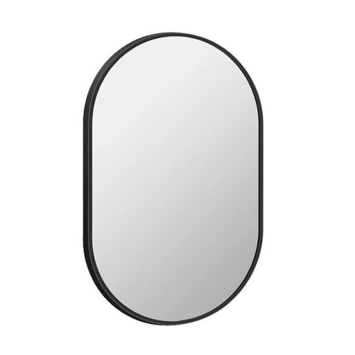 MINOTTI Modern ovális alakú fürdőszobai tükör vastag fekete kerettel – 50x80 cm