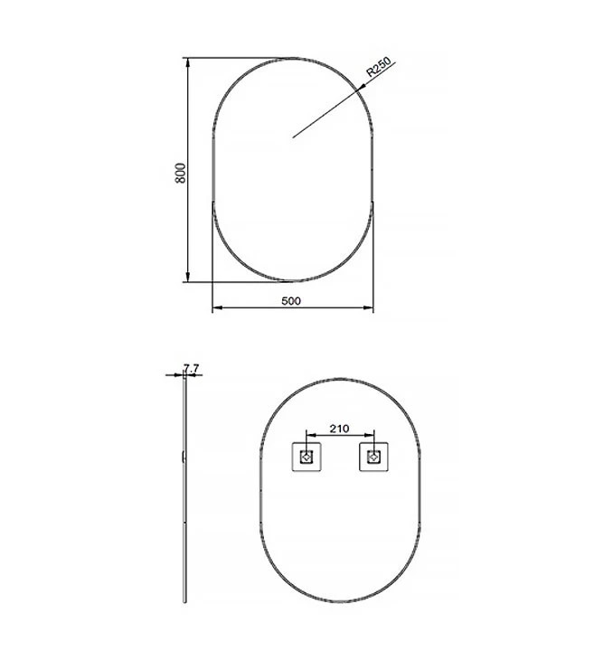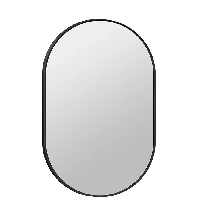 MINOTTI Modern ovális alakú fürdőszobai tükör vékony fekete kerettel – 50x80 cm