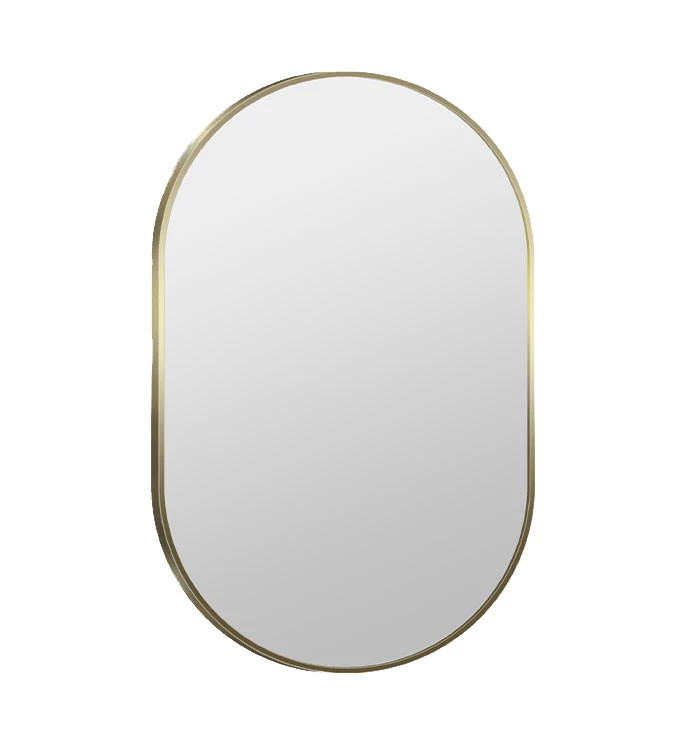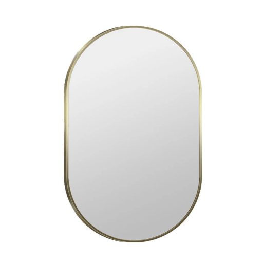 MINOTTI Modern ovális alakú fürdőszobai tükör arany alumínium kerettel – 50x80 cm