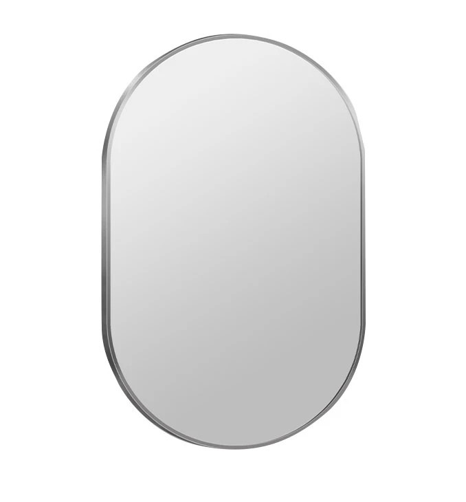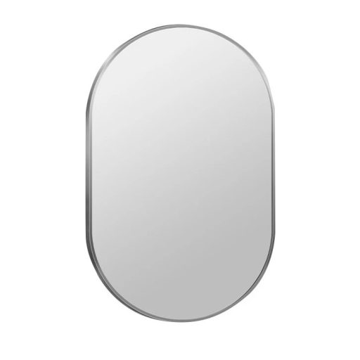MINOTTI Modern ovális alakú fürdőszobai tükör ezüst kerettel – 50x80 cm