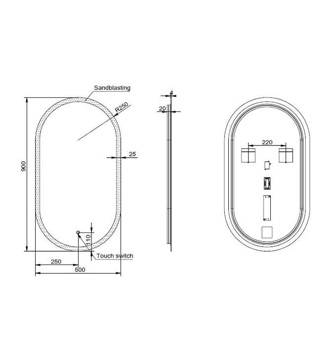 MINOTTI Modern ovális LED-es fürdőszobai tükör érintőkapcsolóval – 50x90 cm