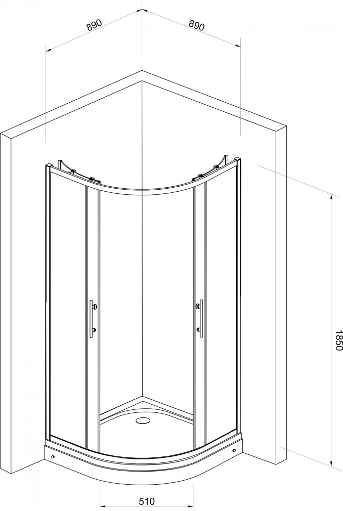 - Zuhanytálca: A termék zuhanytálca NÉLKÜL érkezik. Közvetlenül a burkolatra (épített zuhanyhoz) vagy szabványos R550 rádiuszú, 90x90 cm-es íves zuhanytálcára telepíthető
