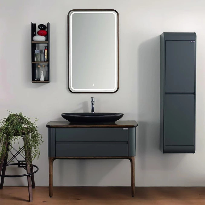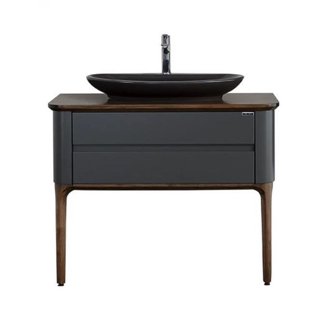 Vigyen exkluzív, modern eleganciát fürdőszobájába a LineART La Vie prémium állványos szekrénnyel, amely a mély tónusú antracit frontok és a nemes sötétdió váz lenyűgöző kontrasztjára épít. A bútor válogatott, nagy sűrűségű nedvességálló alapanyagokból készül, így a magas páratartalom ellenére is évtizedekig megőrzi vetemedésmentes szerkezetét és ujjlenyomatmentes, selymes esztétikáját. A 102 cm széles, finoman lekerekített pultfelület ideális és stabil alapot nyújt egy stílusos pultra helyezhető mosdónak, miközben a két tágas, csillapított záródású fiók bőséges tárolóhelyet biztosít. Fontos: A termék a képen látható mosdókagylót és csaptelepet nem tartalmazza, így lehetősége van egy egyedi megoldással teljesen személyre szabni a fürdőszobáját.