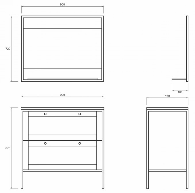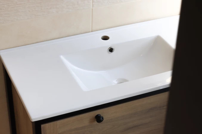 Vigyen karakteres, modern indusztriális stílust fürdőszobájába a Minotti prémium szettjével, amely a loft design és a funkcionális tárolás tökéletes ötvözete. A válogatott, nedvességálló alapanyagokból készült álló szekrény matt fekete fémváza és a meleg tónusú natúr tölgy frontok nemcsak esztétikusak, hanem a párás környezetben is évtizedekig megőrzik stabilitásukat. A 90 cm széles kialakítás két nagyméretű, csillapított záródású fiókkal biztosít bőséges helyet, miközben a szetthez tartozó, fekete keretes tükör az alsó rakodóperemével egységes és elegáns megjelenést kölcsönöz a térnek. Fontos: A termék a képen látható mosdókagylót és csaptelepet nem tartalmazza, így lehetősége van egy egyedi, stílusos medencével teljesen személyre szabni a fürdőszobáját.