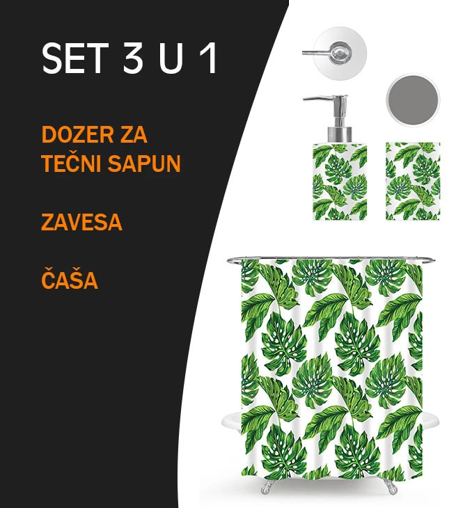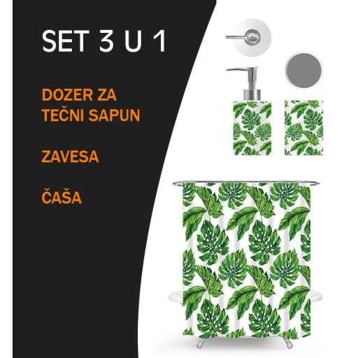 Varázsolja fürdőszobáját egy egzotikus oázissá ezzel a prémium, 3 az 1-ben kiegészítő szettel, amely a trópusi növényvilág frissességét ötvözi a modern eleganciával. A hófehér alapon megjelenő, élethű Monstera levélmotívumok azonnal természetközeli atmoszférát teremtenek, miközben egységes és rendezett megjelenést kölcsönöznek a helyiségnek. A készlet tartalmaz egy nagyméretű, kiváló vízlepergető képességű textil zuhanyfüggönyt, valamint egy hozzá passzoló, stílusos szappanadagolót és fogmosópoharat. Ez az olasz tervezésű, tartós anyagokból készült szett ideális választás mindazoknak, akik praktikus, mégis esztétikai szempontból meghatározó megoldást keresnek fürdőszobájuk felfrissítésére.