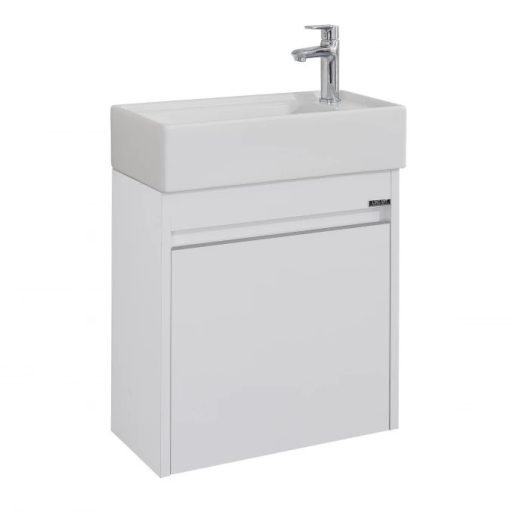 A LineArt Moon 500 fehér mosdós fürdőszobaszekrény a minimalista design és a maximális helykihasználás ötvözete, amely matt fehér felületével tisztaságot és modern eleganciát sugároz. Ez a professzionális nedvességálló fürdőszoba bútor emelt sűrűségű farostlemez (MDF) és speciálisan kezelt bútorlap kombinációjából készül, így teljes védelmet nyújt a párás környezet és a ráfröccsenő víz ellen, megakadályozva a szerkezet felpúposodását. Az 505 mm széles, kompakt kialakítás ideális megoldás kisebb fürdőszobákba vagy vendég-WC-kbe, miközben a prémium kerámia mosdóval kiegészített egység kényelmes napi használatot biztosít. A használati komfortot a beépített soft-close (csillapított záródású) mechanika teszi teljessé, amely garantálja az ajtó halk és kíméletes csukódását. A fali, függesztett kivitel nemcsak esztétikus, hanem a padló tisztítását is rendkívül egyszerűvé és gyorssá teszi.