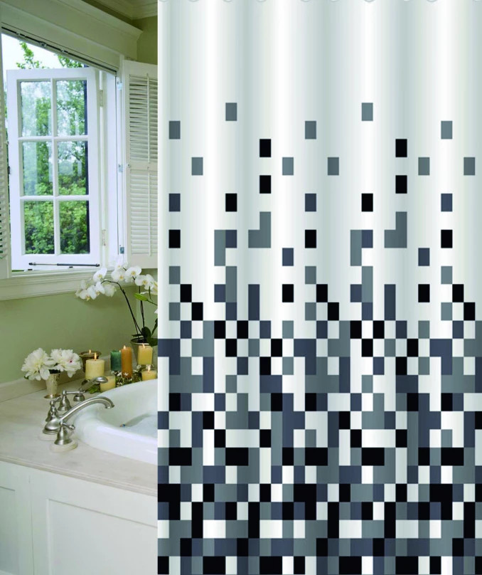 Vigyen modern, technológiai ihletésű dinamikát fürdőszobájába ezzel a különleges, pixelgrafikás zuhanyfüggönnyel. A fehér alapon fokozatosan sűrűsödő fekete és szürke négyzetmotívumok izgalmas vizuális átmenetet képeznek, amely a kortárs digitális művészet világát idézi. A prémium minőségű, vízlepergető poliészter szövet nemcsak esztétikus, hanem hatékony védelmet nyújt a nedvesség ellen, miközben selymes tapintása és lágy esése fokozza a kényelemérzetet. Ez az olasz tervezésű kiegészítő tartós és könnyen kezelhető megoldás, amely stílusos ékköve lesz minden modern enteriőrnek.