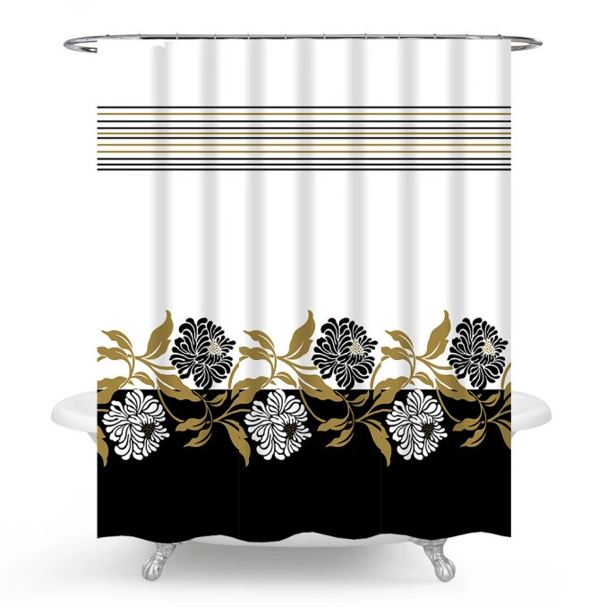 Vigyen pazar eleganciát és modern luxust fürdőszobájába ezzel a különleges, arany és fekete motívumokkal díszített zuhanyfüggönnyel. A hófehér alapon futó vízszintes arany csíkozás és az alsó harmadban megjelenő, sötétkék és arany árnyalatú virágminta kifinomult vizuális egyensúlyt teremt, amely bármely enteriőrt azonnal stílusossá varázsol. A prémium minőségű, 100% vízlepergető poliészter szövet hatékonyan tartja a vizet a zuhanyzón belül, miközben selymes tapintása és lágy esése fokozza a mindennapi komfortérzetet. Ez az olasz tervezésű kiegészítő nemcsak praktikus megoldás, hanem tartós és esztétikus ékköve is otthonának.