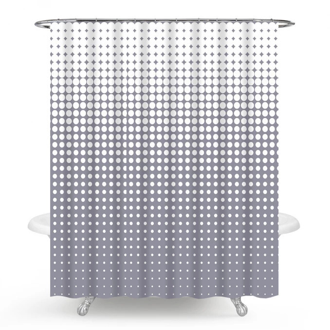 Vigyen modern, dinamikus stílust fürdőszobájába ezzel a különleges, szürke tónusú zuhanyfüggönnyel. A fehér alapon felülről lefelé sűrűsödő, különböző méretű pöttyökből álló minta elegáns vizuális átmenetet és mélységet ad a térnek. A prémium minőségű, vízlepergető poliészter szövet hatékonyan gátolja meg a víz kifröccsenését, miközben selymes tapintása és lágy esése fokozza a mindennapi komfortérzetet. Ez az olasz tervezésű kiegészítő nemcsak praktikus védelmet nyújt, hanem tartós és könnyen kezelhető, stílusos ékköve is otthonának.
