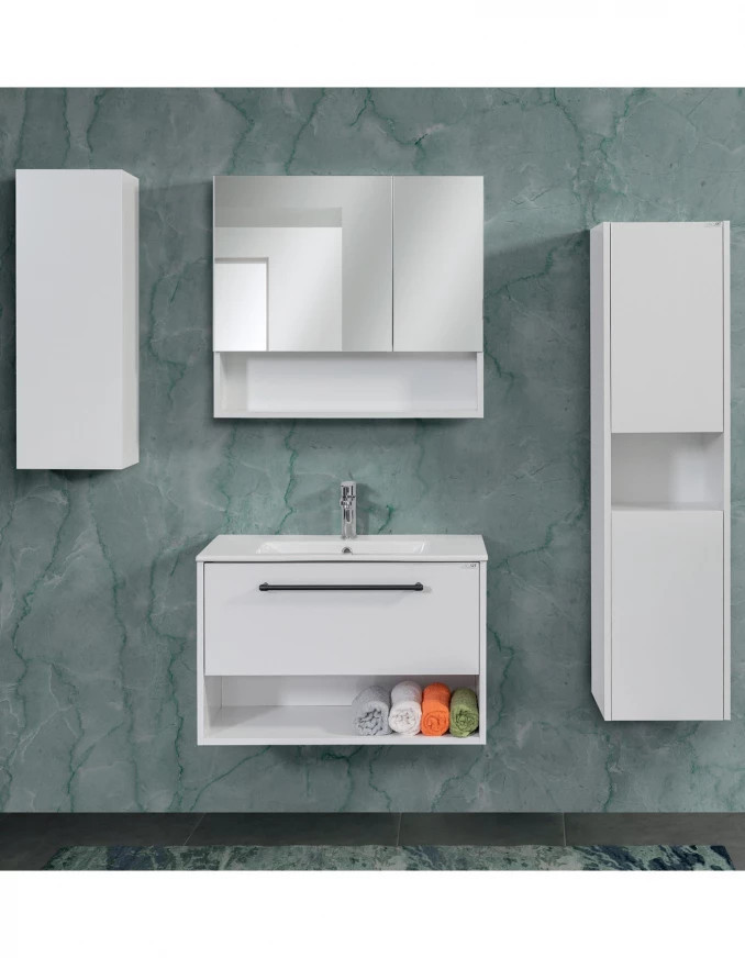 LINEART NOVA 600 fehér Kétszárnyas tükrös fürdőszoba szekrény Soft Close funkcióval – 58x70 cm