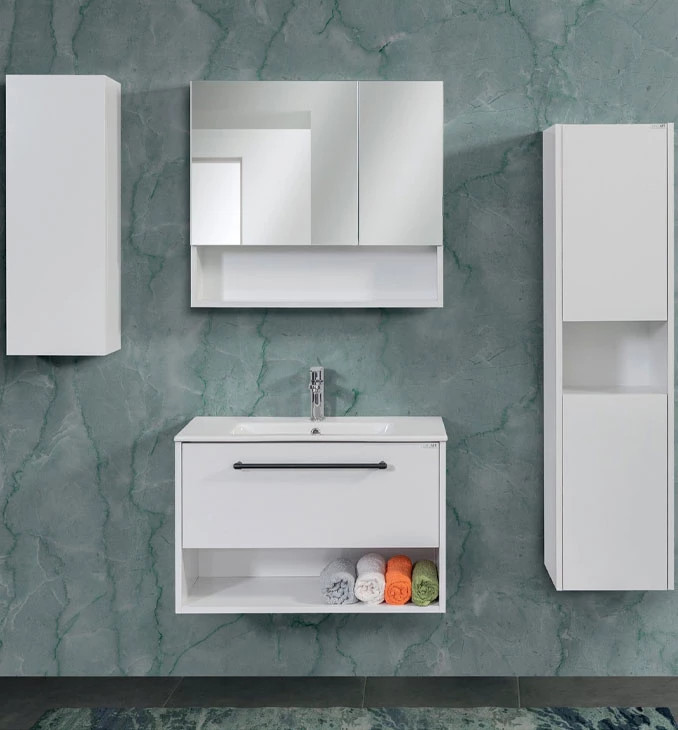 LINEART NOVA 800 fehér Kétszárnyas tükrös fürdőszoba szekrény Soft Close funkcióval – 78x70 cm