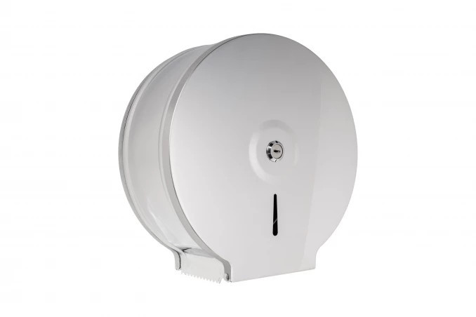 Vigyen reprezentatív megjelenést és professzionális tisztaságot mosdóhelyiségébe ezzel a magasfényű, nagy kapacitású kéztörlő adagolóval. A tükörfényesre polírozott rozsdamentes acél felület nemcsak luxus érzetet kelt, hanem rendkívül tartós és könnyen fertőtleníthető is, így ideális választás a legmagasabb higiéniai elvárásokkal rendelkező közösségi terekbe. A kompakt, kör alakú forma és a 116 mm-es mélység optimális helykihasználást biztosít a falon, míg a frontoldali szintjelző ablak segítségével az utántöltés szükségessége bármikor, kinyitás nélkül ellenőrizhető. Ez az olasz tervezésű, robusztus és vandálbiztos adagoló a funkcionális megbízhatóság és a csillogó esztétika tökéletes ötvözete.