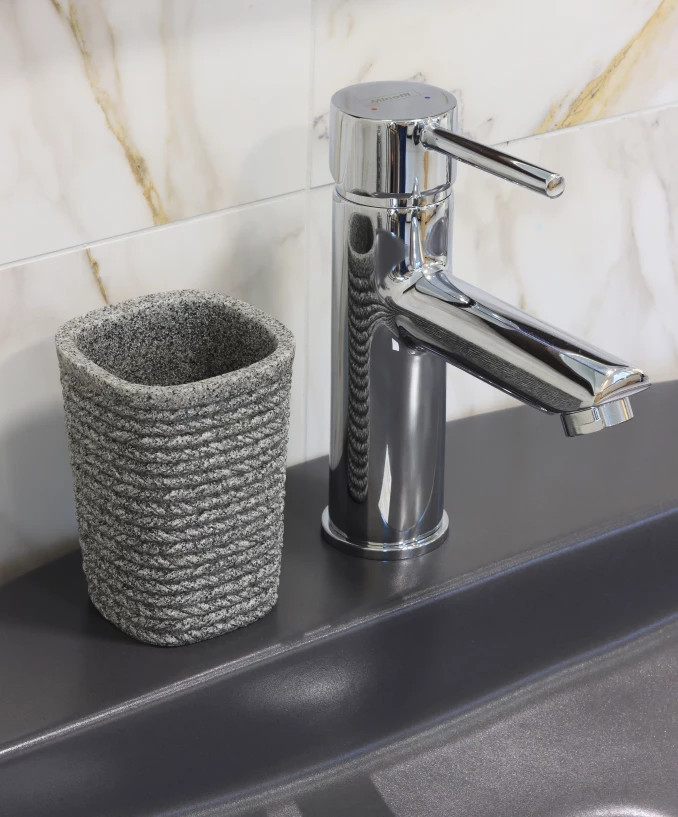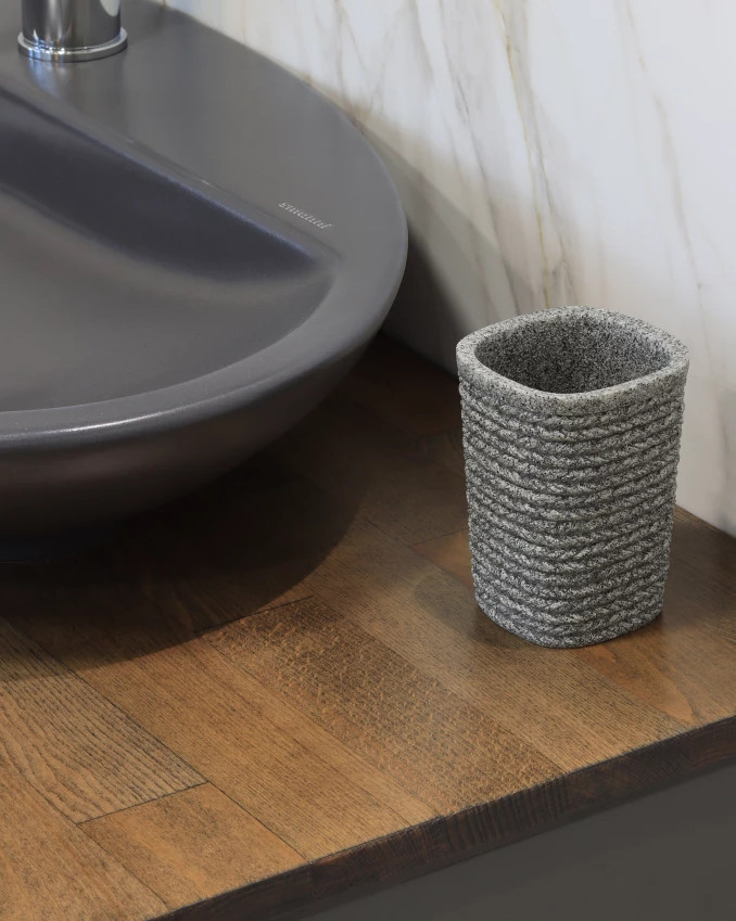 Minotti sötétszürke kötött mintás kerámia fogkefetartó pohár