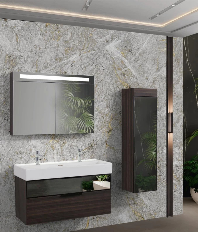 A LineART SHARP 1000 (SHA1000S-MR) tükörszekrény a prémium fürdőszobák elegáns és funkcionális központi eleme. A 98 cm széles, kétajtós kialakítás bőséges tárolóhelyet kínál, miközben a felső részbe integrált, széles LED világítás tökéletes fényt biztosít a napi készülődéshez. A Sardes kivitel modern, karakteres megjelenést kölcsönöz a helyiségnek. A szekrény váza prémium minőségű, nedvességálló anyagból készült, alumínium kerettel és edzett üveggel, így a legpárásabb környezetben is megőrzi tartósságát. A Soft Close (csillapított) zsanérok garantálják a halk és prémium használati élményt.