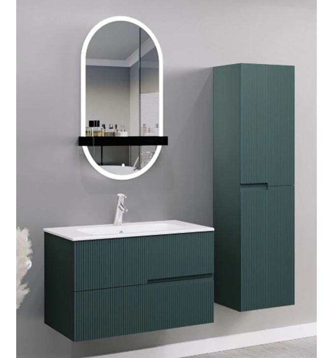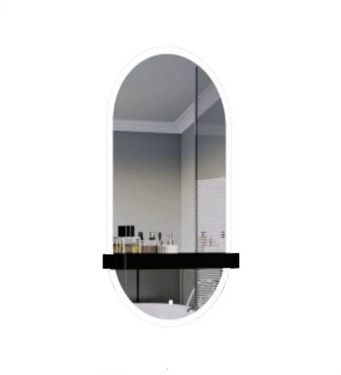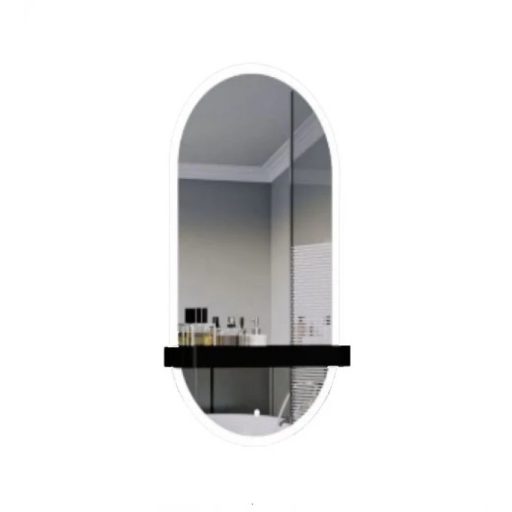 LINEART VISTA Modern ovális LED-es fürdőszobai tükör polccal – 50x90 cm