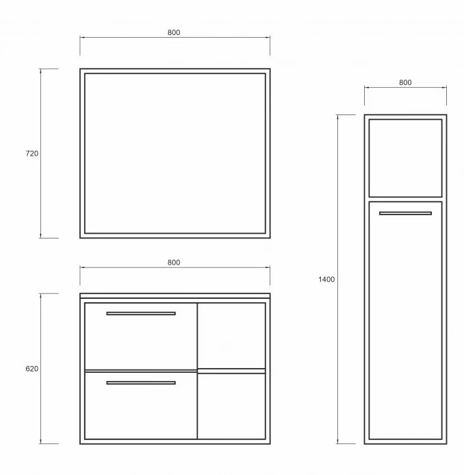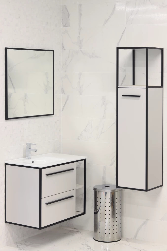 MINOTTI W-800-3 Modern fürdőszobai tükör fekete kerettel – 80x72 cm
