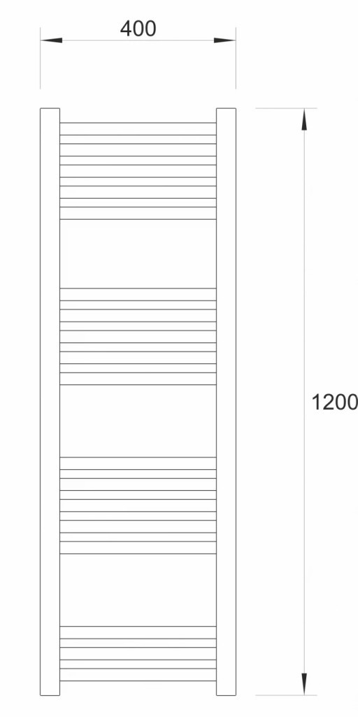 Törölközőszárítós radiátor 400x1200 mm méretben, elegáns matt fekete kivitelben. Nagyobb méretének és hatékony hőleadásának köszönhetően ideális választás tágasabb fürdőszobákba, miközben praktikus törölközőszárítást biztosít. A modern, matt felület és a határozott vonalvezetés tökéletesen illeszkedik a kortárs minimál és indusztriális belső terekbe. Élvezze a hatékony hőleadást és a mindig bársonyosan meleg törölközők luxusát ezzel a prémium, professzionális megoldással!