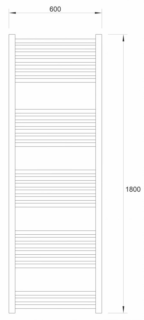 Törölközőszárítós radiátor 600x1800 mm méretben, klasszikus fehér kivitelben, amely maximális szárítókapacitást és kiemelkedő hőteljesítményt biztosít nagyobb fürdőszobákba. Az extra magas, 1800 mm-es kialakítás és a 600 mm-es szélesség rendkívül nagy felületet kínál, így több törölköző és fürdőköpeny egyidejű szárítására is alkalmas, ezért ideális választás nagycsaládosok számára.