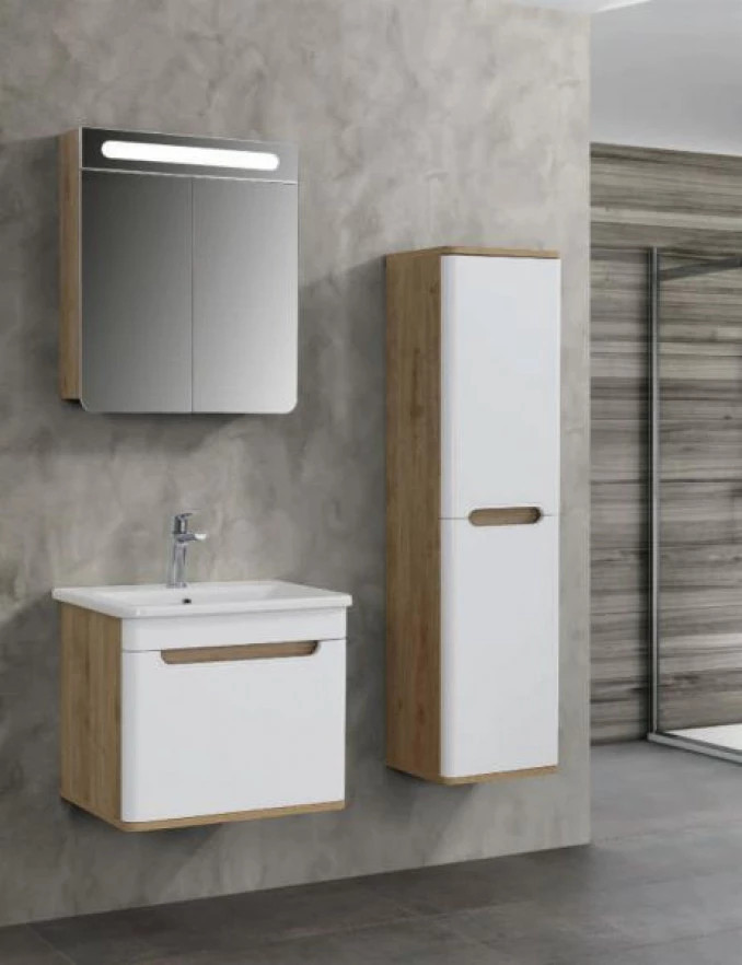 Emelje fürdőszobája fényét a LineART WING prémium tükrös szekrénnyel, amely a modern technológiát és a természetes natúr tölgy esztétikát ötvözi. A beépített, nagy fényerejű LED világítás tökéletes látási viszonyokat biztosít a reggeli készülődéshez, miközben a két ajtó mögötti tágas polcrendszer segít a piperecikkek rendezett tárolásában. A teljes szerkezet speciális, nagy sűrűségű nedvességálló alapanyagokból készül, így a közvetlen pára ellenére is évtizedekig megőrzi vetemedésmentes állapotát és selymes tapintású matt felületét. A kompakt, 58 cm-es szélesség ideális választás kisebb és közepes méretű mosdók fölé is.