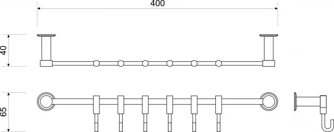 MINOTTI 6 akasztós fali fogas, króm