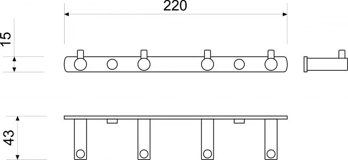 MINOTTI 4 akasztós fali fogas, króm