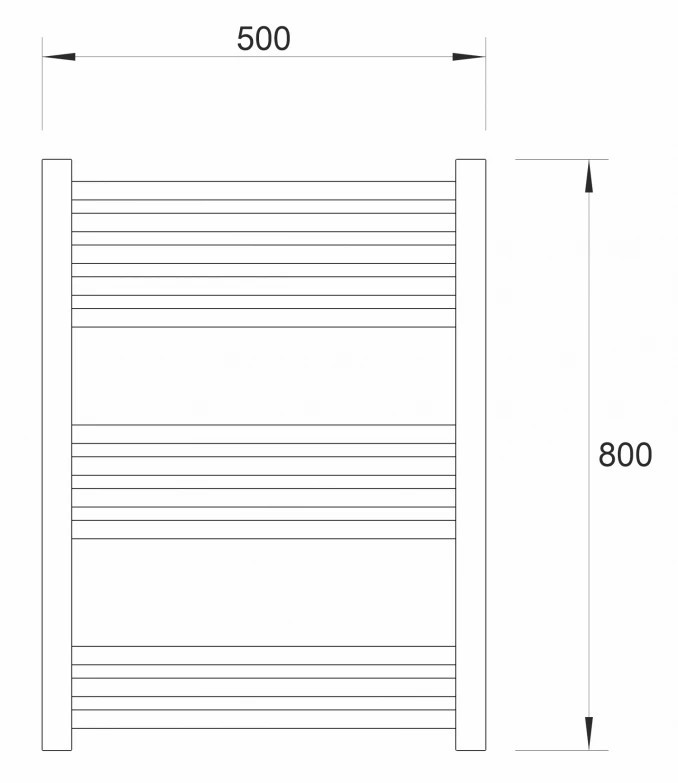 Törölközőszárítós radiátor 400x800 mm méretben, amely modern megjelenésével és hatékony hőleadásával ideális választás fürdőszobába. A 400 mm-es szélesség optimális egyensúlyt biztosít a helytakarékos kialakítás és a megfelelő szárítófelület között, így nagyobb törölközők elhelyezésére is alkalmas.